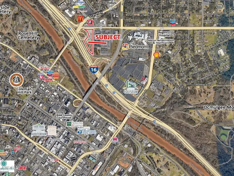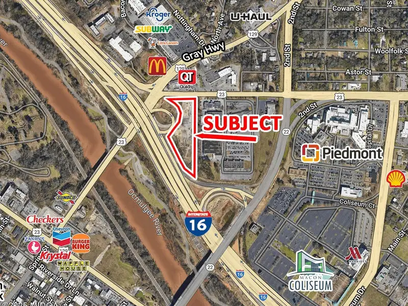 Commercial Property with 590 Feet I-16 Frontage in Macon, 4.84 Acres Flat Site