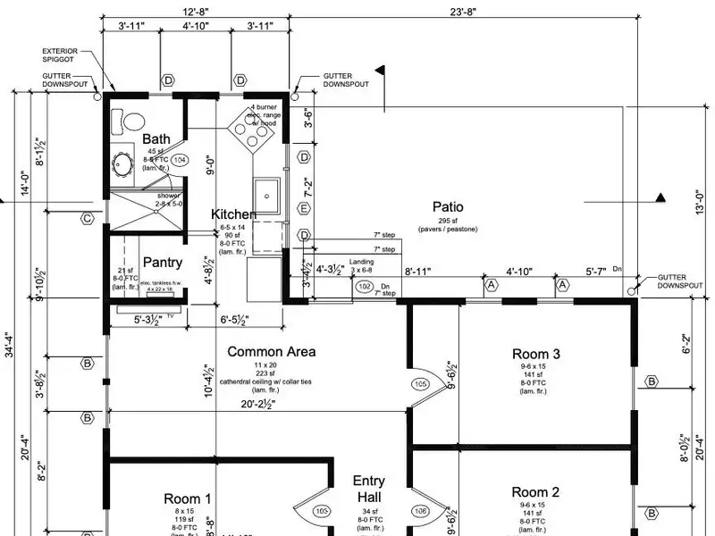 Three rooms plus common areas