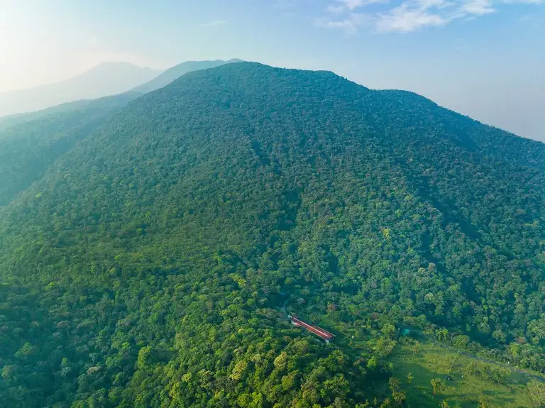 The lodge itself welcomes guests with its stunning vaulted wood ceilings, an indoor arboretum, and inviting lounge areas that embrace the surrounding nature. The unique architecture harmonizes seamlessly with the landscape, offering spaces for visitors to relax in the observation lounge, engage in birdwatching, or marvel at the breathtaking views of the volcanoes and mesmerizing sunsets.